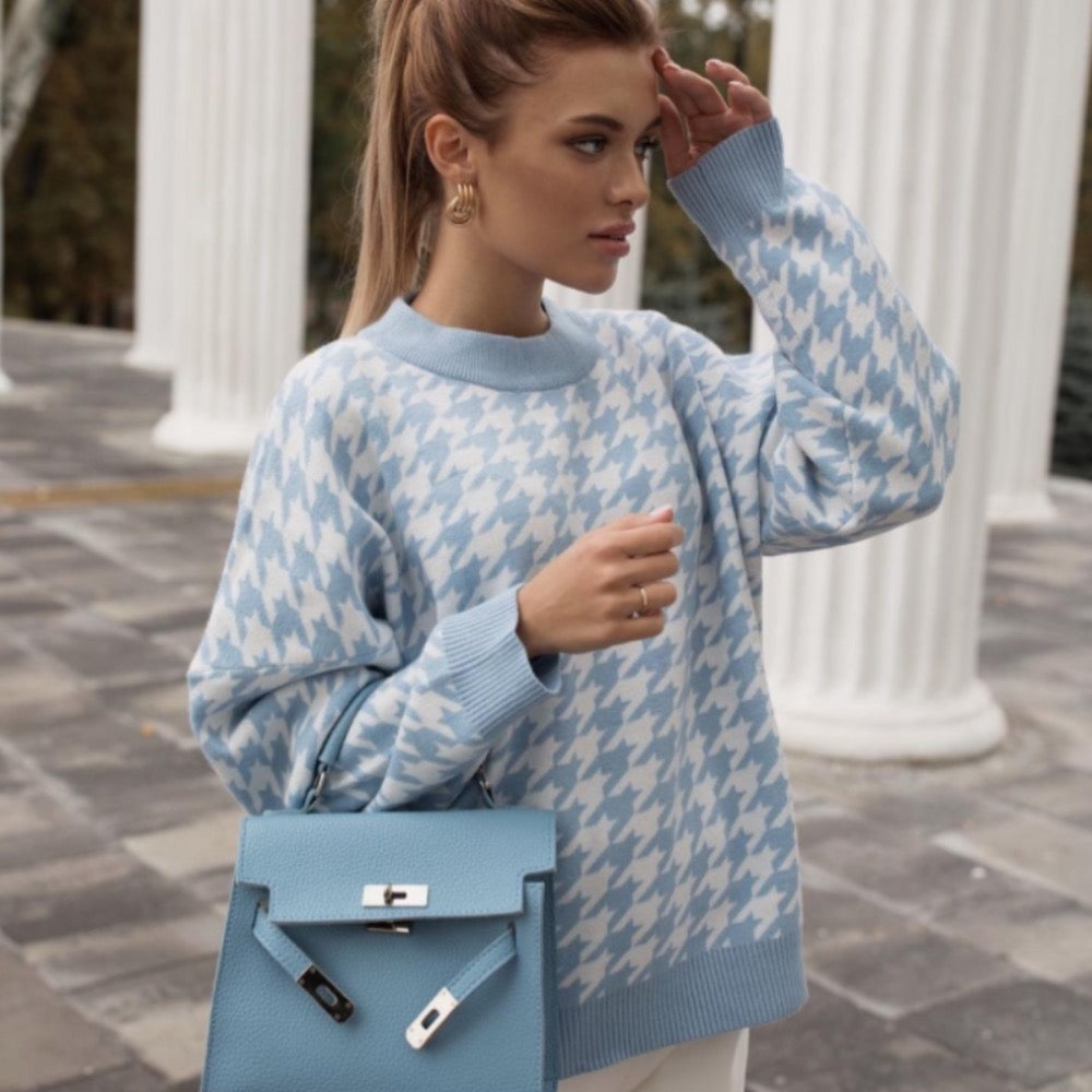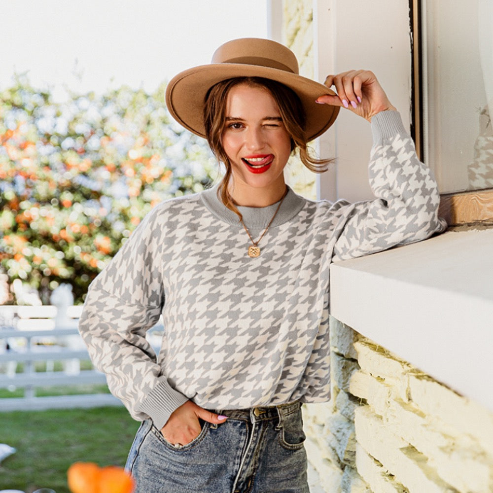 Damski sweter dziergany w pepitkę