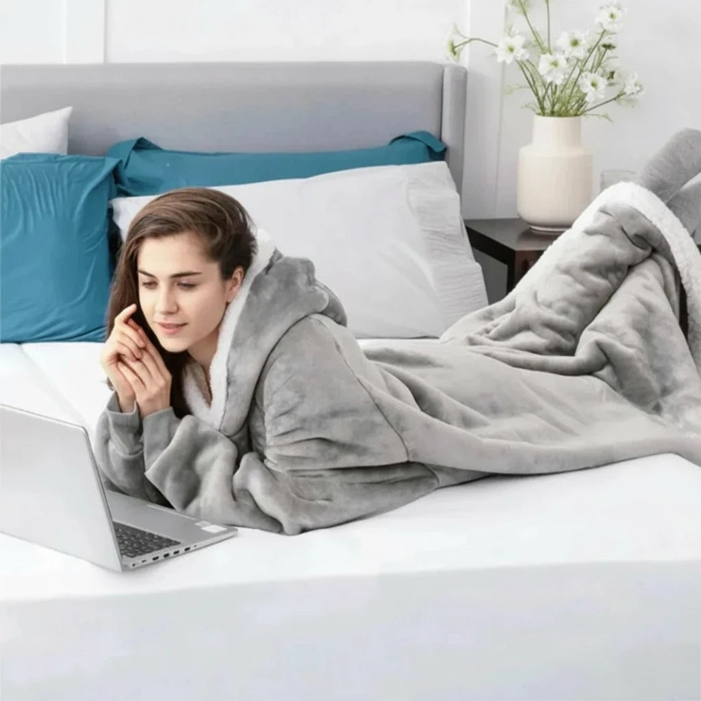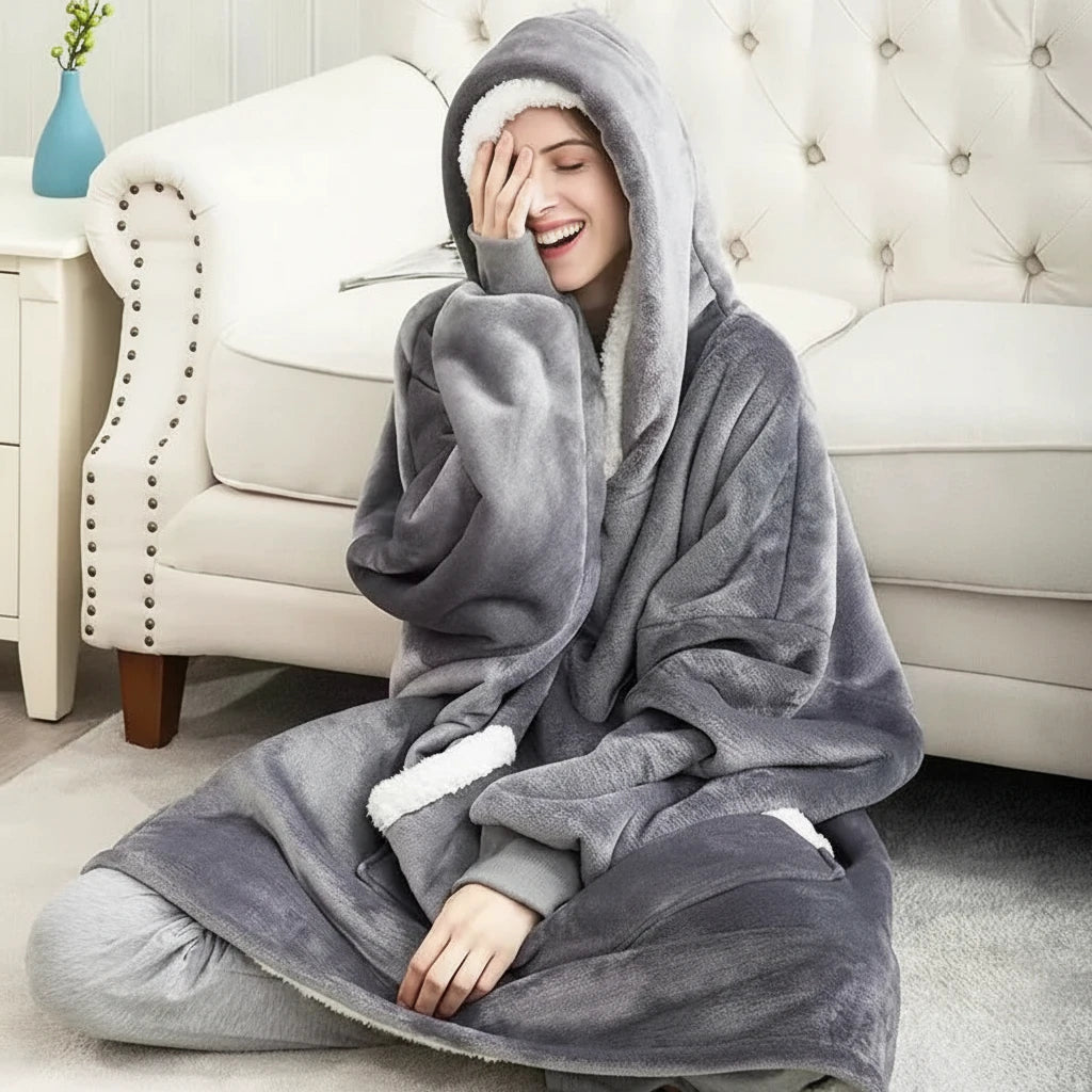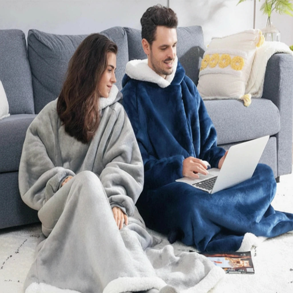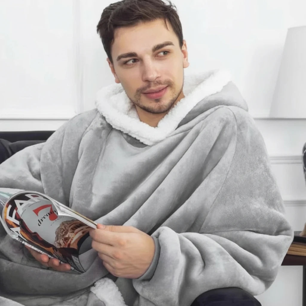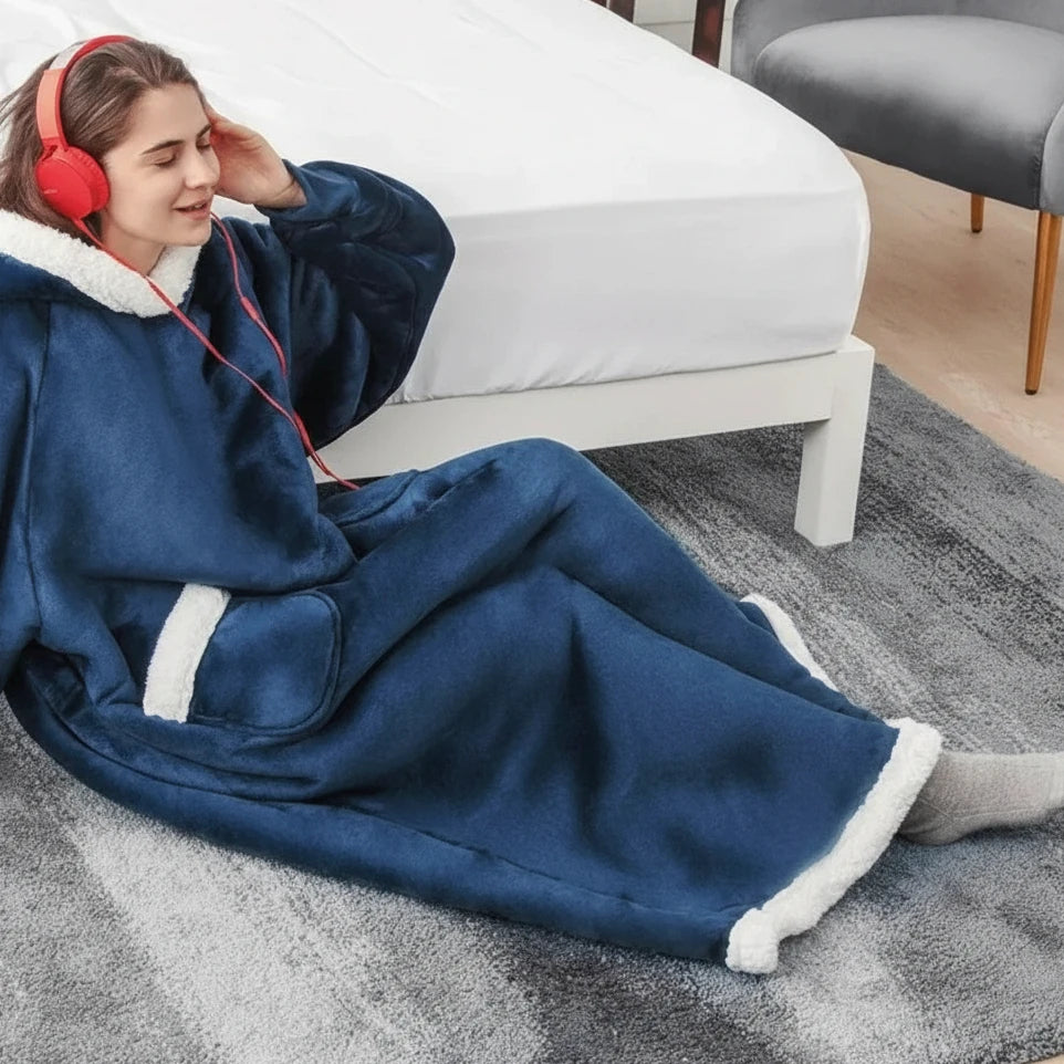 Długa kocobluza unisex z kapturem i białymi wstawkami