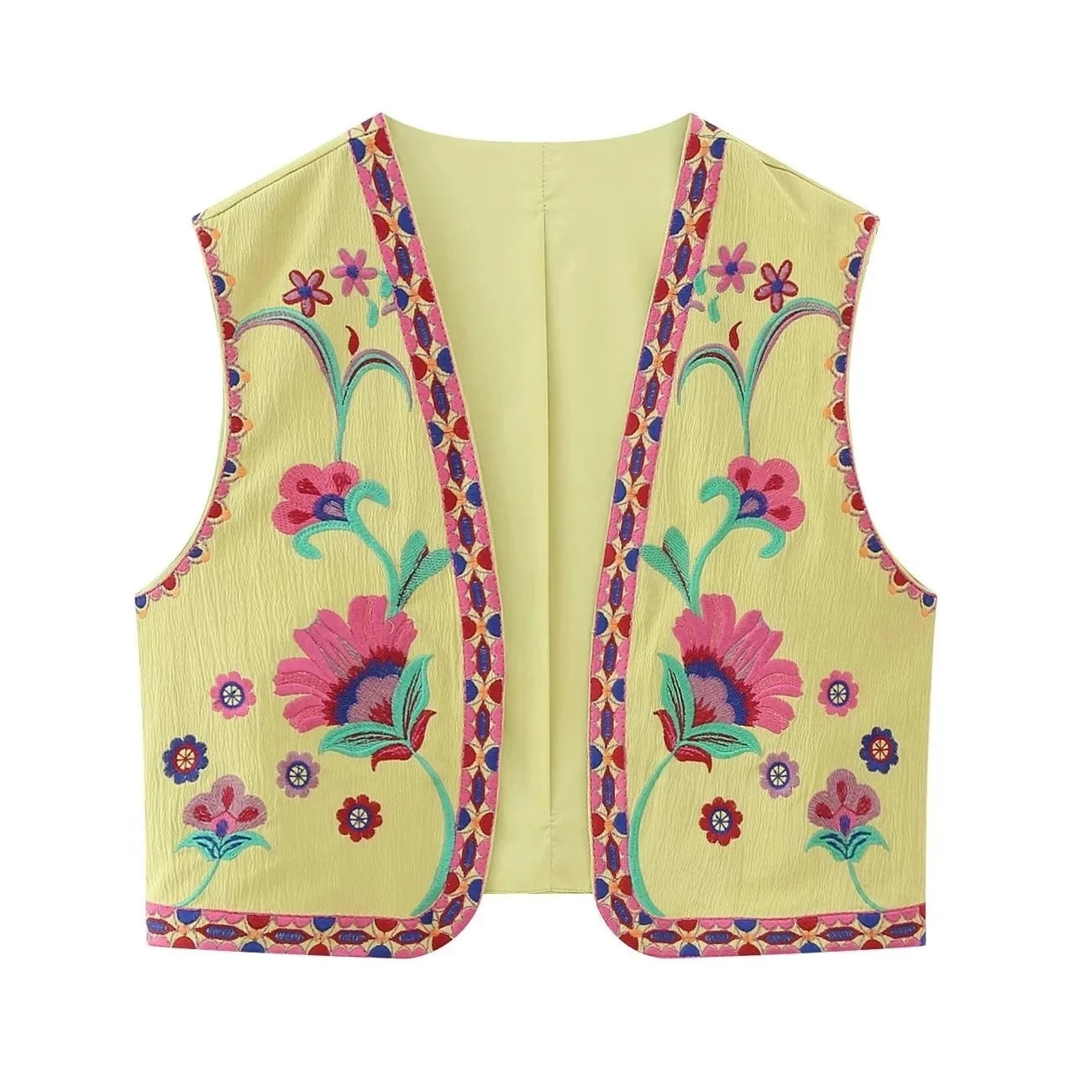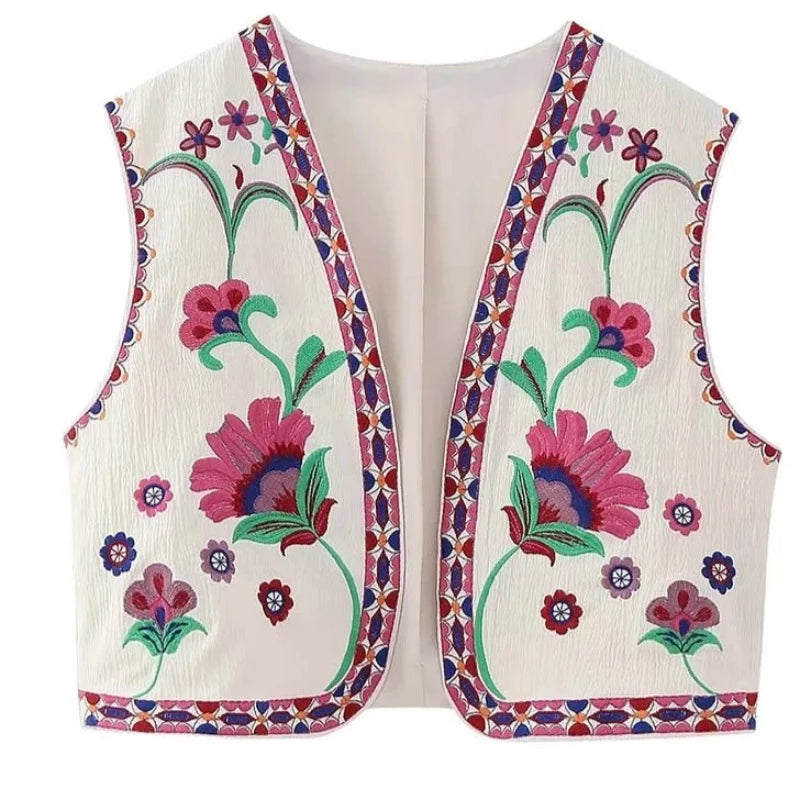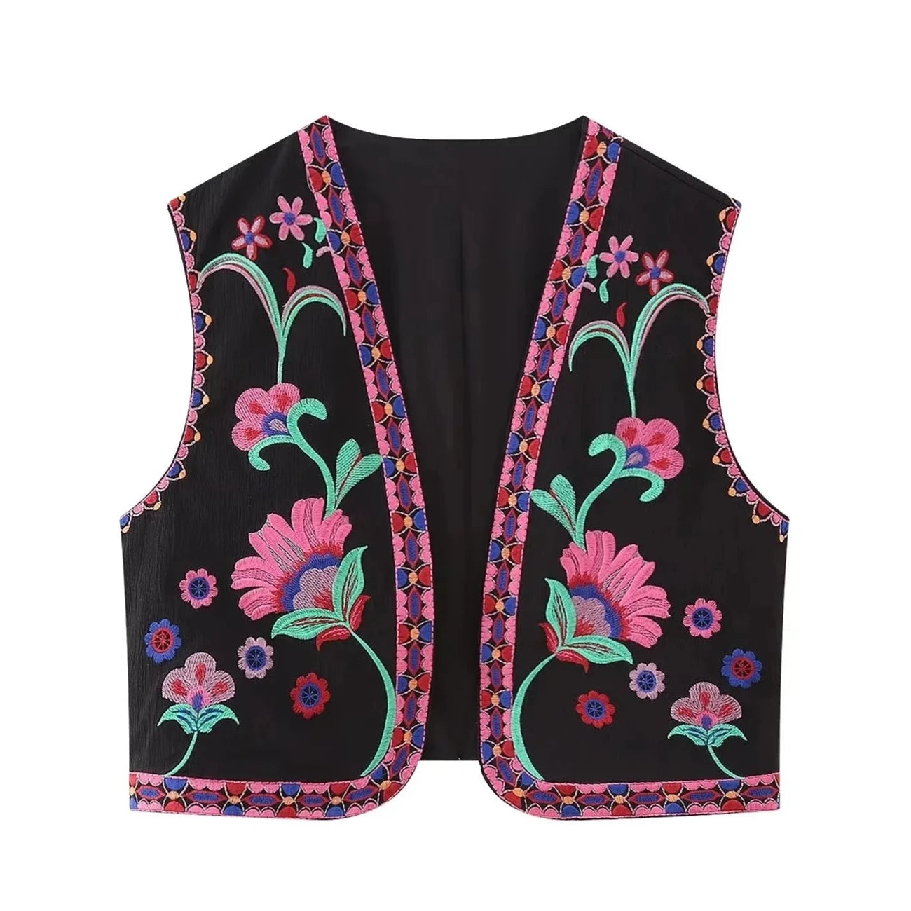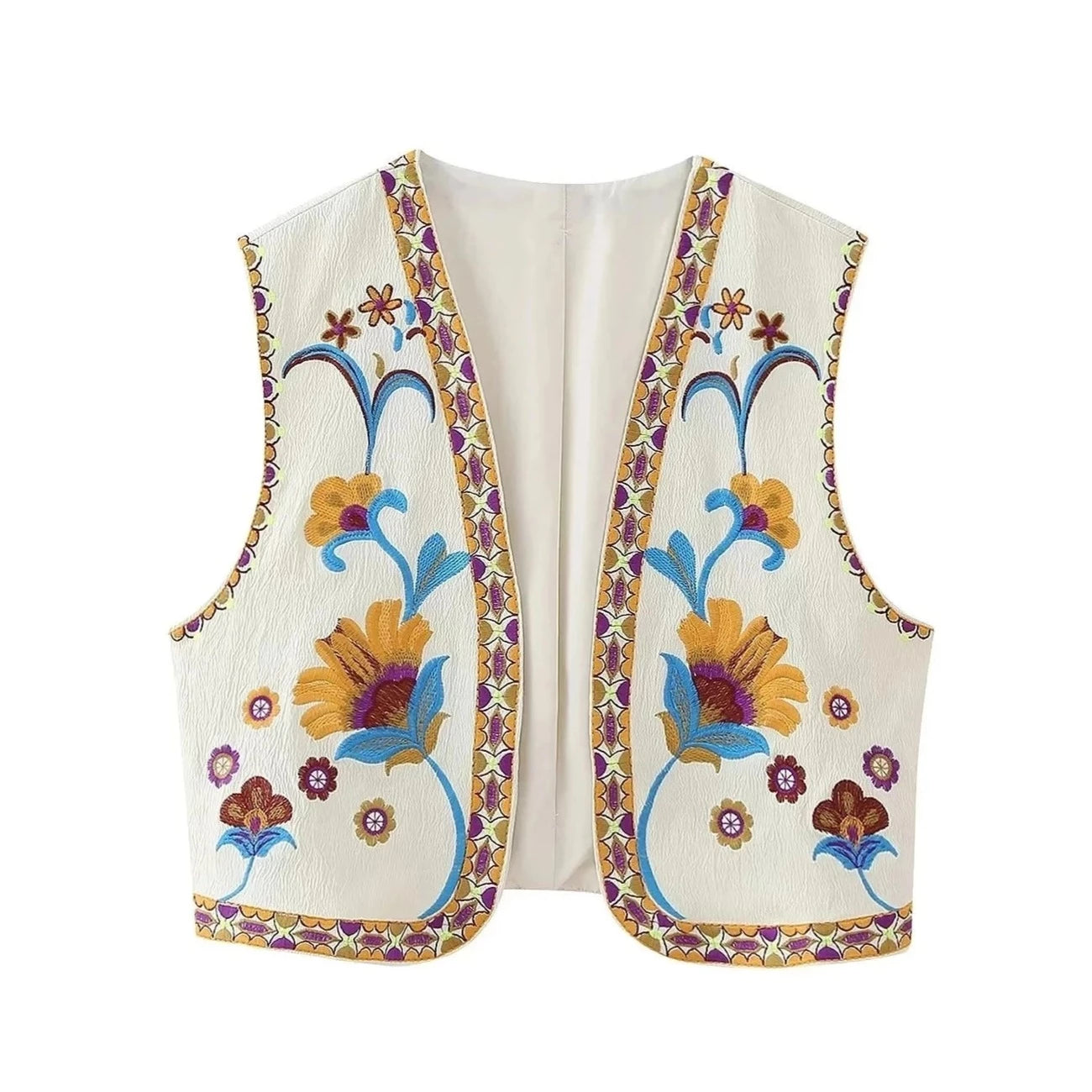 Ta kamizelka damska to połączenie delikatności i elegancji, dzięki wyjątkowemu haftowanemu wzorowi kwiatowemu. Prezentuje subtelny design, który dodaje kobiecego uroku każdej stylizacji. Jest nie tylko wyjątkowa w swoim wzornictwie, ale również zapewnia komfort noszenia, będąc doskonałym wyborem zarówno na specjalne okazje, jak i na bardziej codzienne sytuacje.