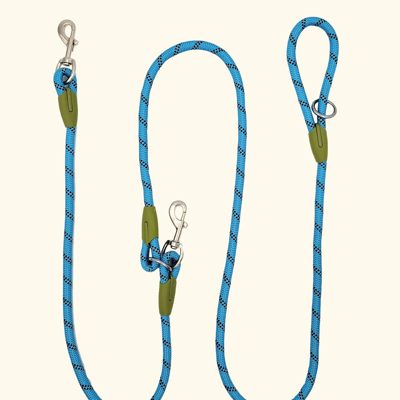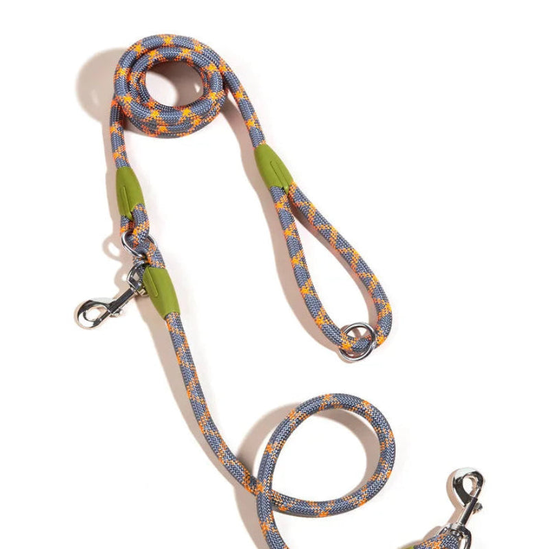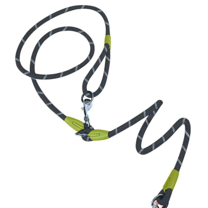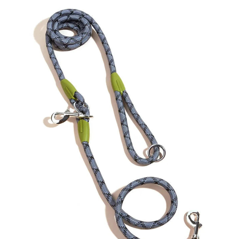 Smycz wykonana jest z mocnego, plecionego nylonu, który gwarantuje trwałość i odporność na przetarcia. Dodatkowo na całej długości znajduje się odblaskowa nić, poprawiająca widoczność po zmroku i zwiększająca bezpieczeństwo zarówno psa, jak i właściciela.