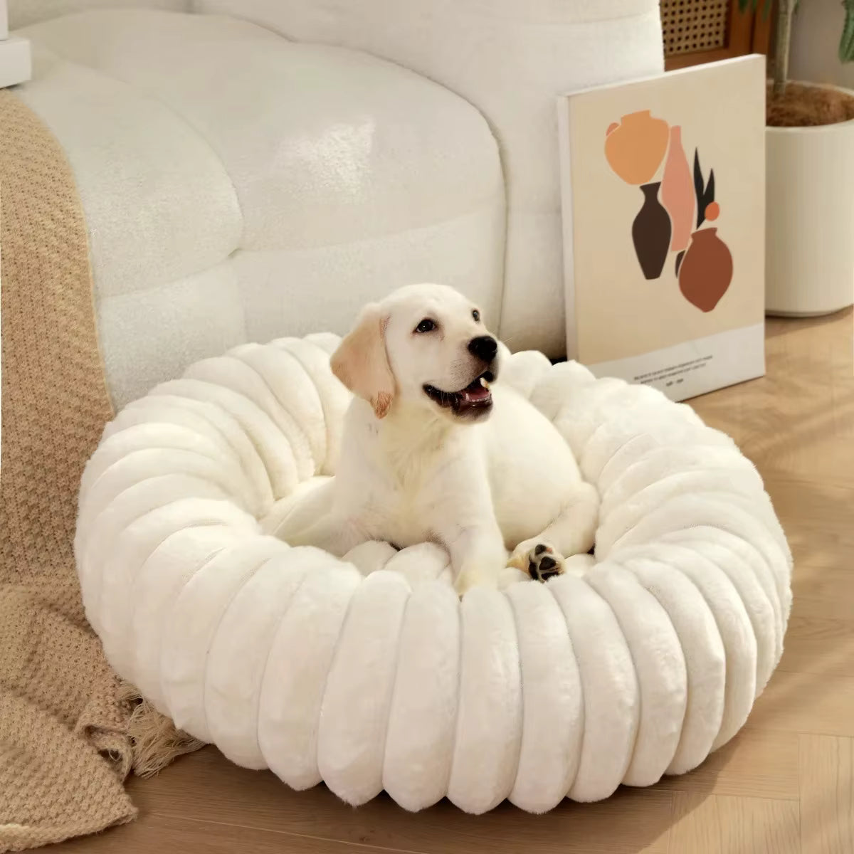 Okrągłe legowisko dla pupila – miękkie, karbowane posłanie z pluszu dla psa lub kota