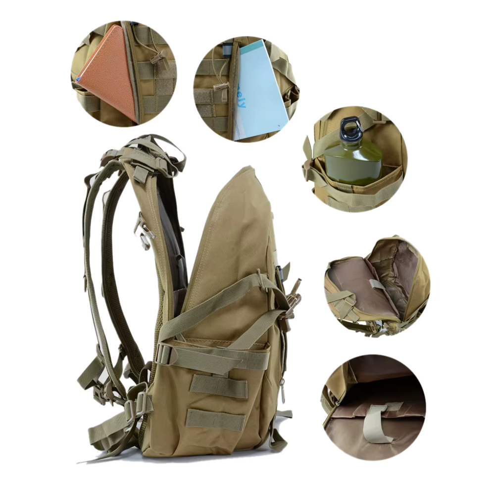 Solidny plecak taktyczny o pojemności 30–40L łączy wygodę na co dzień z funkcjonalnością w terenie. Wykonany z wodoodpornej, odpornej na przetarcia tkaniny, ma profilowane szelki, pas piersiowy i wentylowany panel pleców, dzięki czemu pozostaje komfortowy nawet przy pełniejszym pakunku. System MOLLE na froncie i bokach pozwala szybko dołączać dodatkowe kieszenie i akcesoria, a przemyślany układ komór i kieszeni ułatwia porządek oraz szybki dostęp do najważniejszych rzeczy.