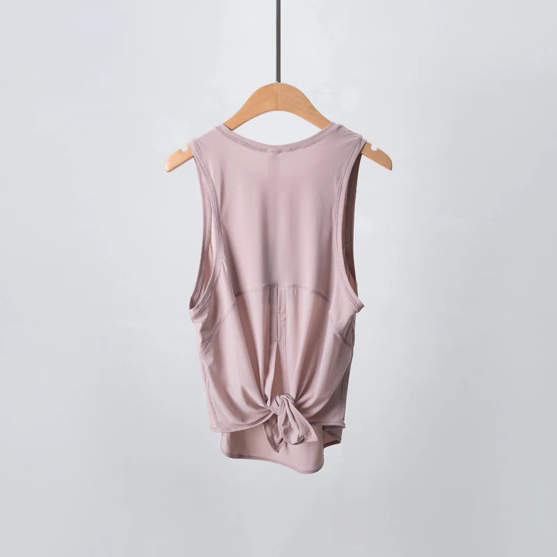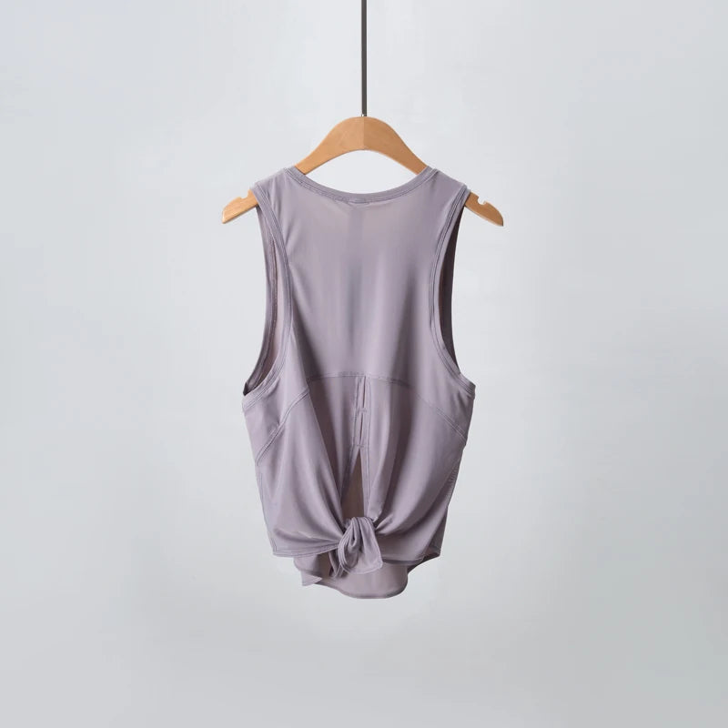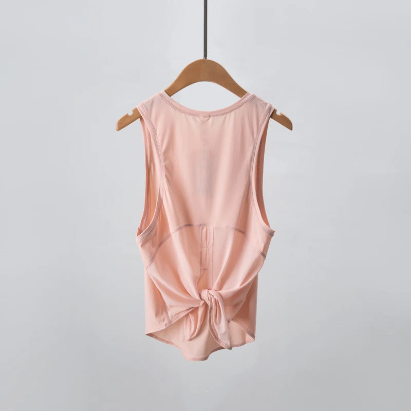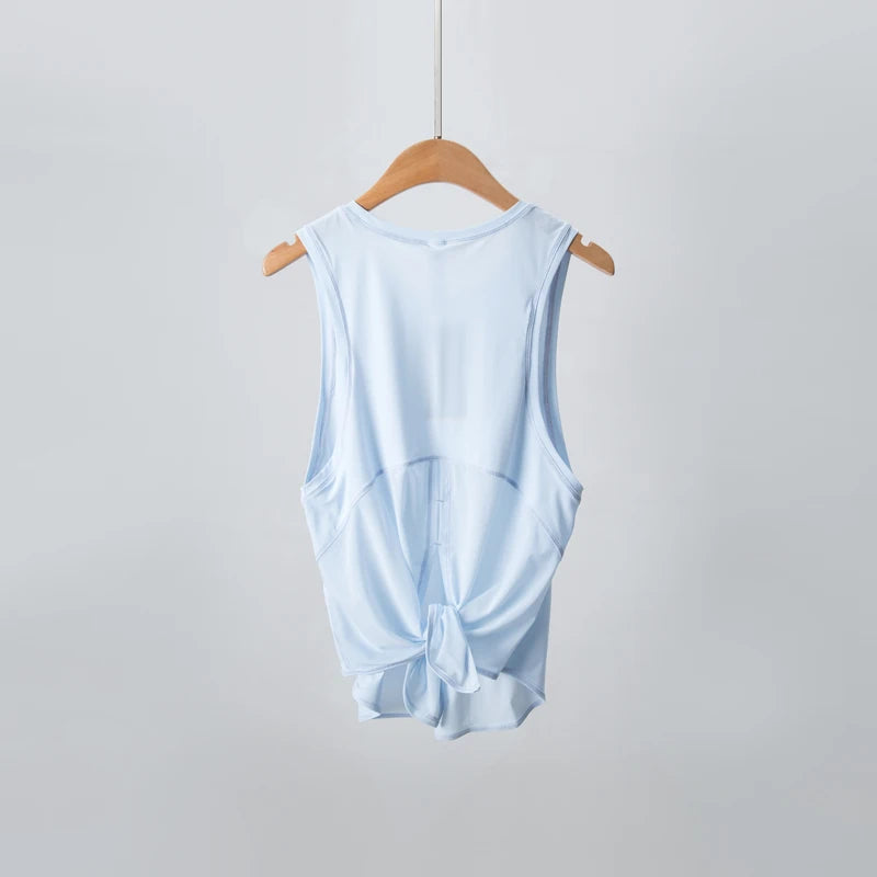 Sportowa koszulka damska bez rękawów, wiązana na plecach