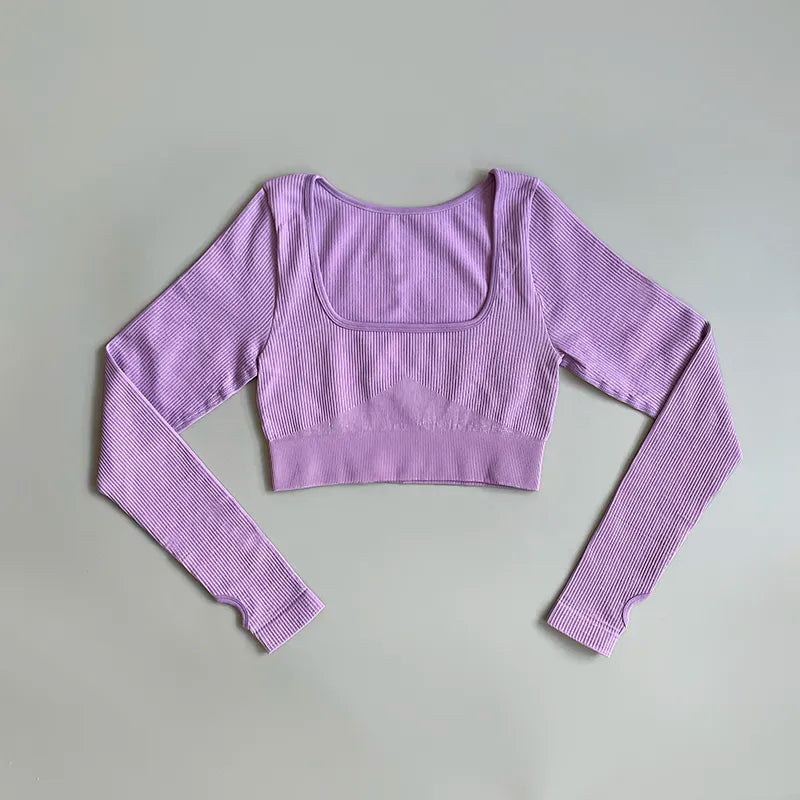 Ten sportowy top damski to połączenie elegancji i funkcjonalności. Z długimi rękawami i kwadratowym dekoltem zapewniającym wyjątkowy wygląd, ten prążkowany top doskonale łączy styl z wygodą.