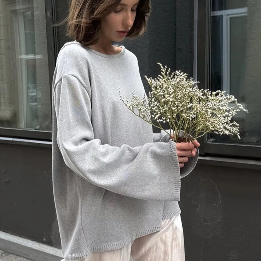 Sweter ma luźny, oversize’owy fason, który maskuje drobne niedoskonałości sylwetki, jednocześnie podkreślając lekkość i swobodę ruchów. Długie rękawy zakończone delikatnym ściągaczem nadają całości miękki, kobiecy charakter. Sweter świetnie wpisuje się w aktualne trendy, łącząc wygodę z nowoczesnym stylem.